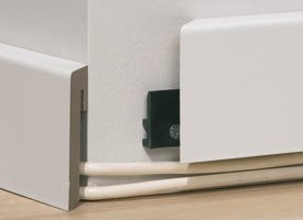 En kabelkanal kan fungere som feielist. I tillegg til at vi tilbyr gulvlister i samme overflate som våre dører har vi også en smart gulvlist med ledningsskjul.