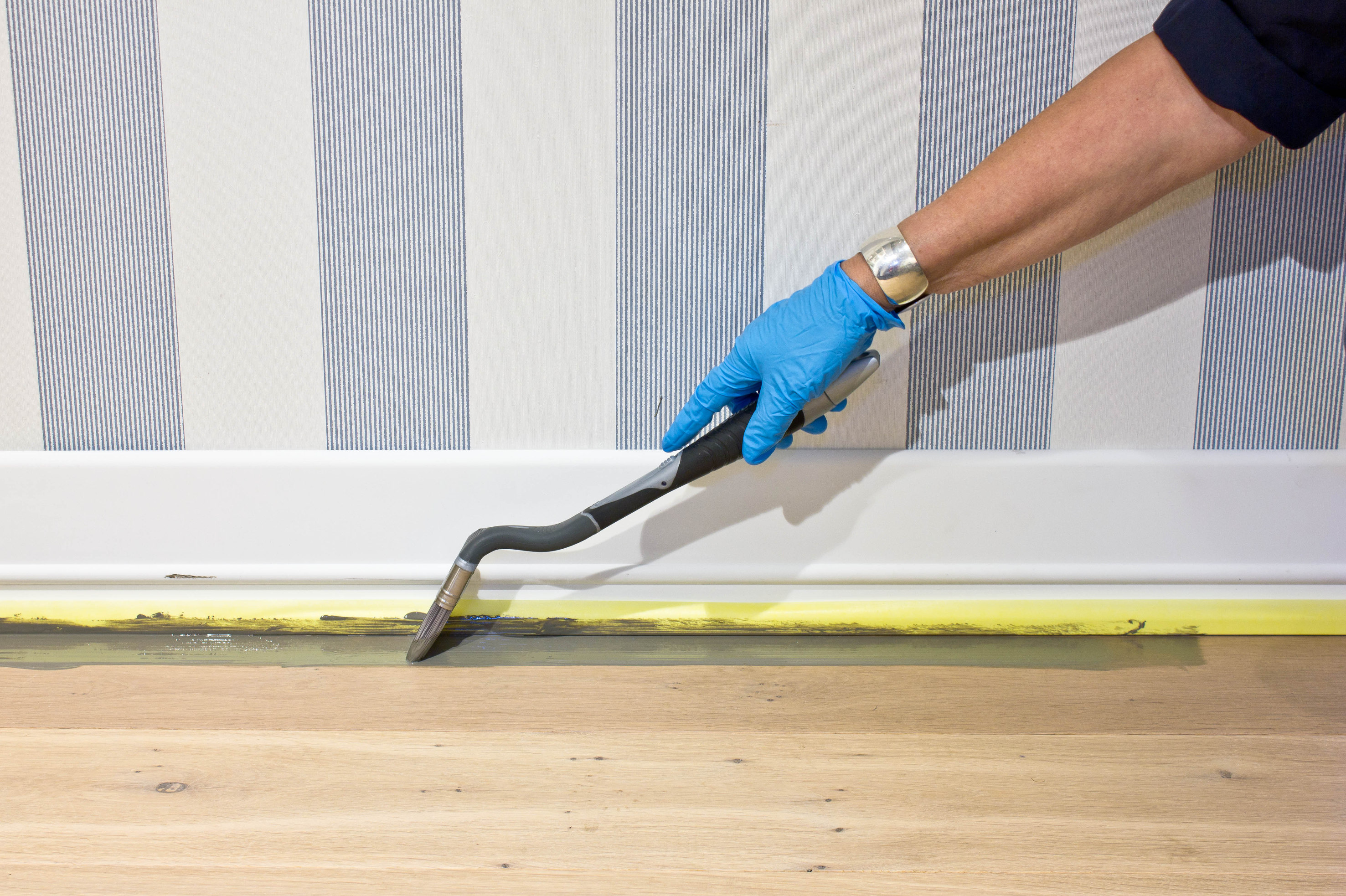 Gulv i ubehandlet tre: Vask nøye, og fjern alt smuss og støv. La gulvet tørke ordentlig før lakking. Gulv i behandlet tre: Slip bort smuss og flekker med fint sandpapir. Om man ønsker det, kan også slike gulv leveres ubehandlet.