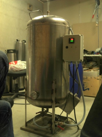 Viktig at disse settes i separate stikk for at ikke sikringen skal gå. Ved oppkok brukes begge. Den har innerkjele for mesking, innebygget pumpe og medfølgende motstrømskjøler.